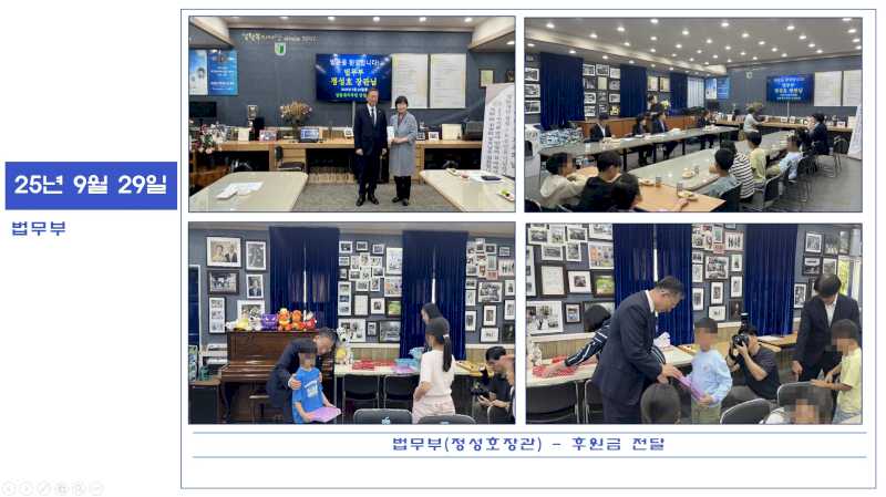 법무부에서 아이들을 위해 후원금을 전달해주셨습니다.